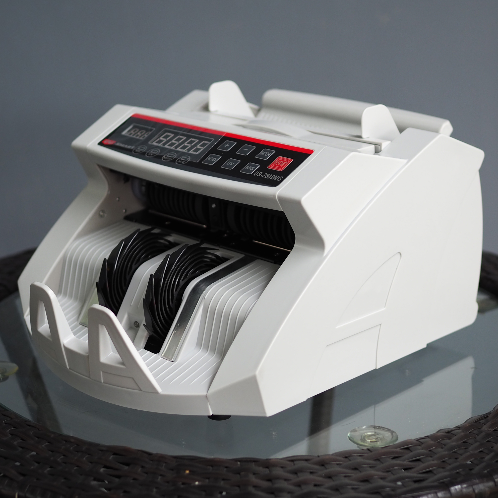 UNI-SMART เครื่องนับและตรวจธนบัตรอัตโนมัติ รุ่น US-2800MG นับธนบัตรไทยและสกุลต่างๆ รวดเร็ว แม่นยำ ตรวจจับธนบัตรปลอมโดย UV และ MG ทันที จอแสดงผลการนับ 4 หลัก จอแสดงการตั้งค่าเป็นชุด 3 หลัก นับ 4 แบบ ปกติ สะสม จัดชุด สะสม+จัดชุด พร้อมจอแสดงจำนวนนับ ภายนอกเครื่อง นับเร็ว 1,000 ฉบับ/นาที พร้อมจับปลอมอัตโนมัติ