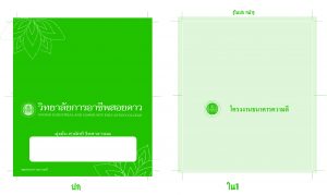 เข้าเล่ม พับกลาง เย็บด้าย - ขนาดมาตรฐาน 9 ซม. x 17.5 ซม. (กางออก 17.50 ซม. x 18 ซม.) เนื้อใน 4 คู่